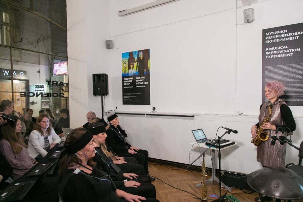 “I sit and worry about her” is a musical improvisation experiment, a spontaneous interaction fluid process which, through a transdisciplinary approach, and the help of neuroscience, technology and social engagement, explores an authentic artistic expression. The working concept resembles an incessant and endless worry of mother for her daughter, presented auto-ethnographically by the author through the sonification of brain waves, a constant improvised caring song. A several months long research and the work development is realized in collaboration with experts from The School of Electrical Engineering, University of Belgrade, and produced by the Center for the Promotion of Science.