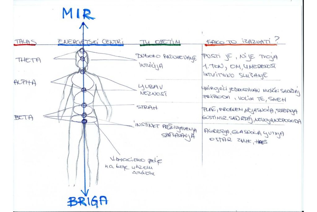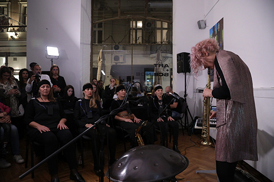 During the performance of this collaborative event, four mothers that have daughters sit still on the scene, facing the author. While they are listening to the improvisation and audio-samples that trigger certain emotions and thoughts, their brain signals are being measured by the computer system based on the OpenBCI tool. In real time, their state of consciousness, as a reaction to music and audio-stimuli that the artist creates and plays, is being estimated. During the performance, the author, with the different sound frequencies, instruments and improvised content, generates three kinds of brain waves in the mothers: alpha, beta, and theta. Alpha waves are dominant in the state of relaxation, beta appears in the state of concentration, and theta waves show up in daydreaming. The computer system registers the dominant brain wave which reflects the condition of mothers, and as a response, it plays the sound diagram that the artist composed in advance, and which represents the frame for the improvised composition. Acquired sound signals are being heard in the performative space, instigating an interactive communication between mothers and the artist, which reacts with the improvisation. The unpredictable sonic content from the brain waves is being manipulated once again by the musical improvised content. Perpetual modification and mutual communication through the sound effects, that activates new possibilities in the sonic game among the participants, becomes a self-making musical piece. The process of immediate composing is woven out of the human and non-human elements, placing the human body in the role of a mediator, which through the software analysis and a spontaneous mixing with other bodies, creates a new hybrid artistic expression.