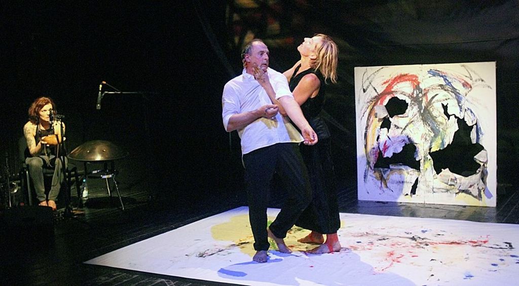 This contemporary work encompasses a series of performances in a specific theater space with a framework story based on the early nineties, reflecting on earlier periods to create the present moment. The work created in the present demands to exist in the future, emerging from the real moment of theater reality as the artistic work created during the performance through dance becomes a valuable painting exhibited in galleries.